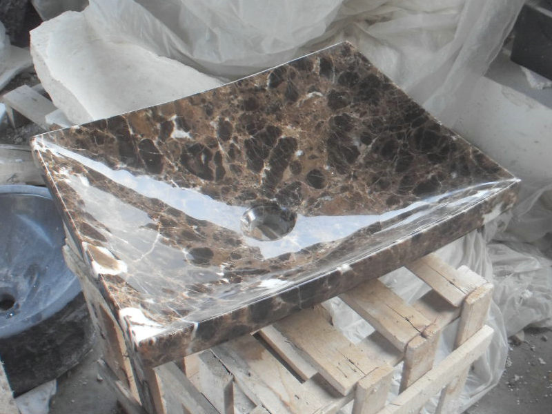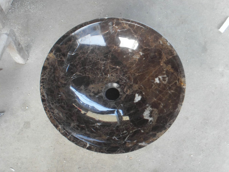 La cuenca del gabinete de baño de mármol marrón oscuro Emperador no solo es visualmente atractivo sino también muy duradero y resistente a las manchas y el daño por agua. Sus patrones naturales únicos hacen que cada cuenca sea única y agrega un toque de sofisticación a la decoración del baño.