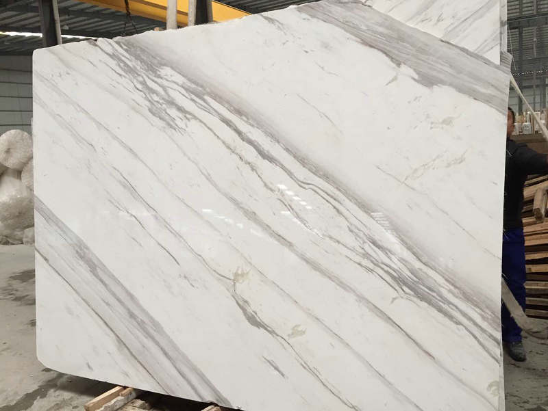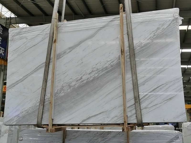 Apariencia: El mármol Volakas luce un impresionante fondo blanco con delicadas vetas grises que crean una sensación de belleza atemporal. Los patrones de vetas varían de sutiles y suaves a pronunciados, lo que confiere a cada losa un atractivo distintivo y artístico.